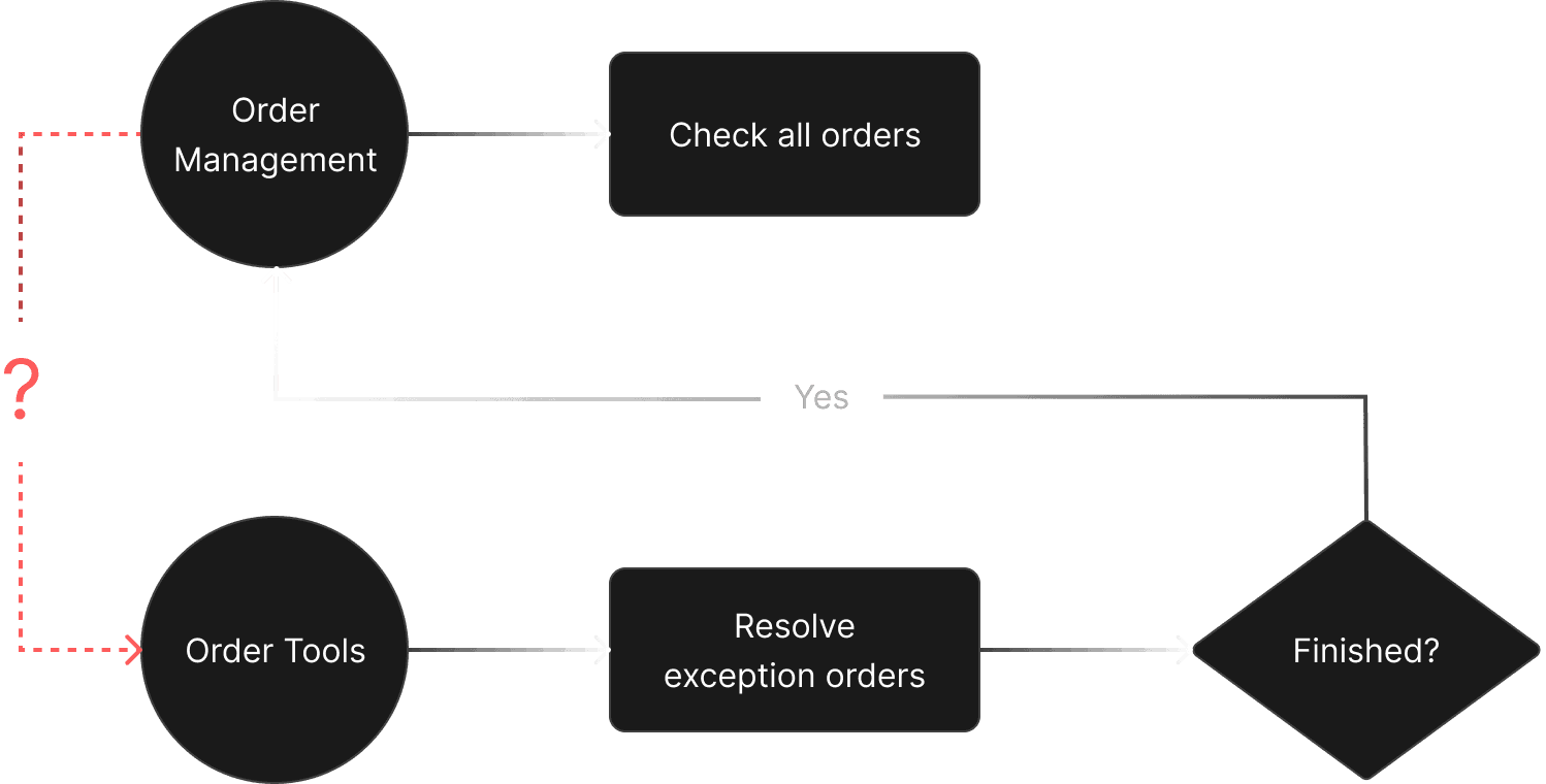 I integrated Order Tools into Order Management, enabling merchants to handle exceptions within the primary order-processing workflow to minimize context switching