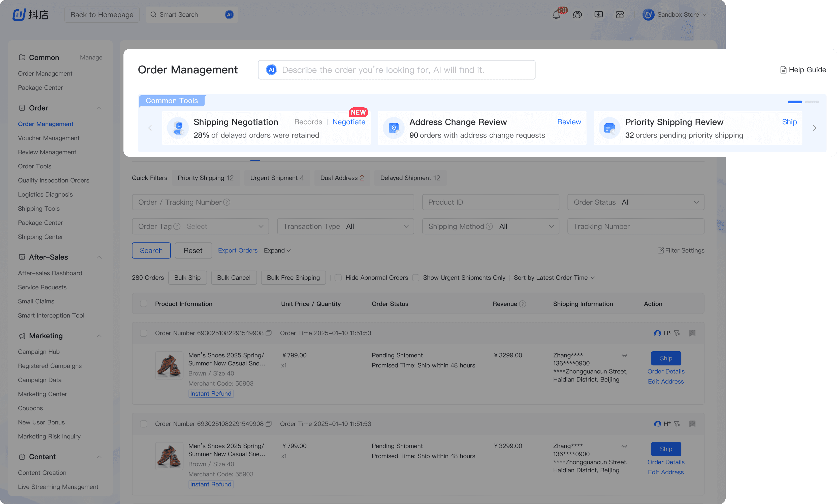 E-commerce merchants often need to handle unexpected cases, like customers requesting address changes, or delivery negotiations. So the Order Tools was designed to help merchants handle those shipping exceptions