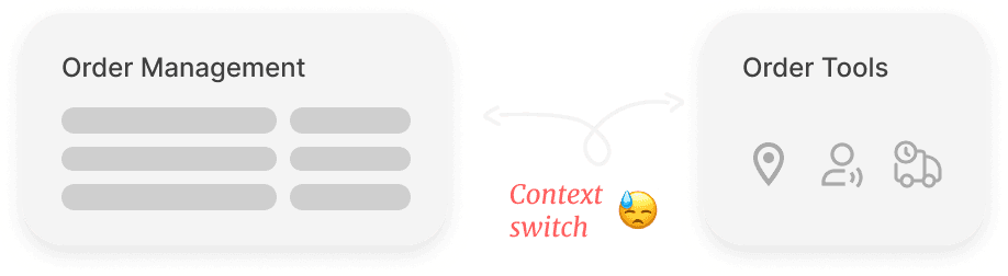 The problem is Order Tools were placed outside the primary workflow, forcing merchants into frequent context switching to take action. This fragmented workflow disrupted high-frequency tasks and resulted in low UV for the Order Tools